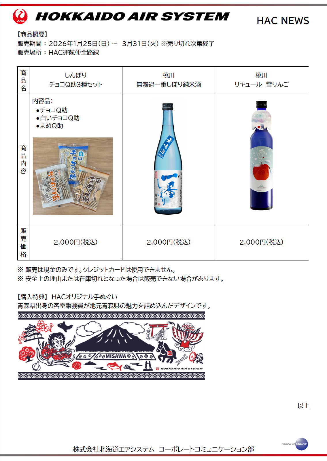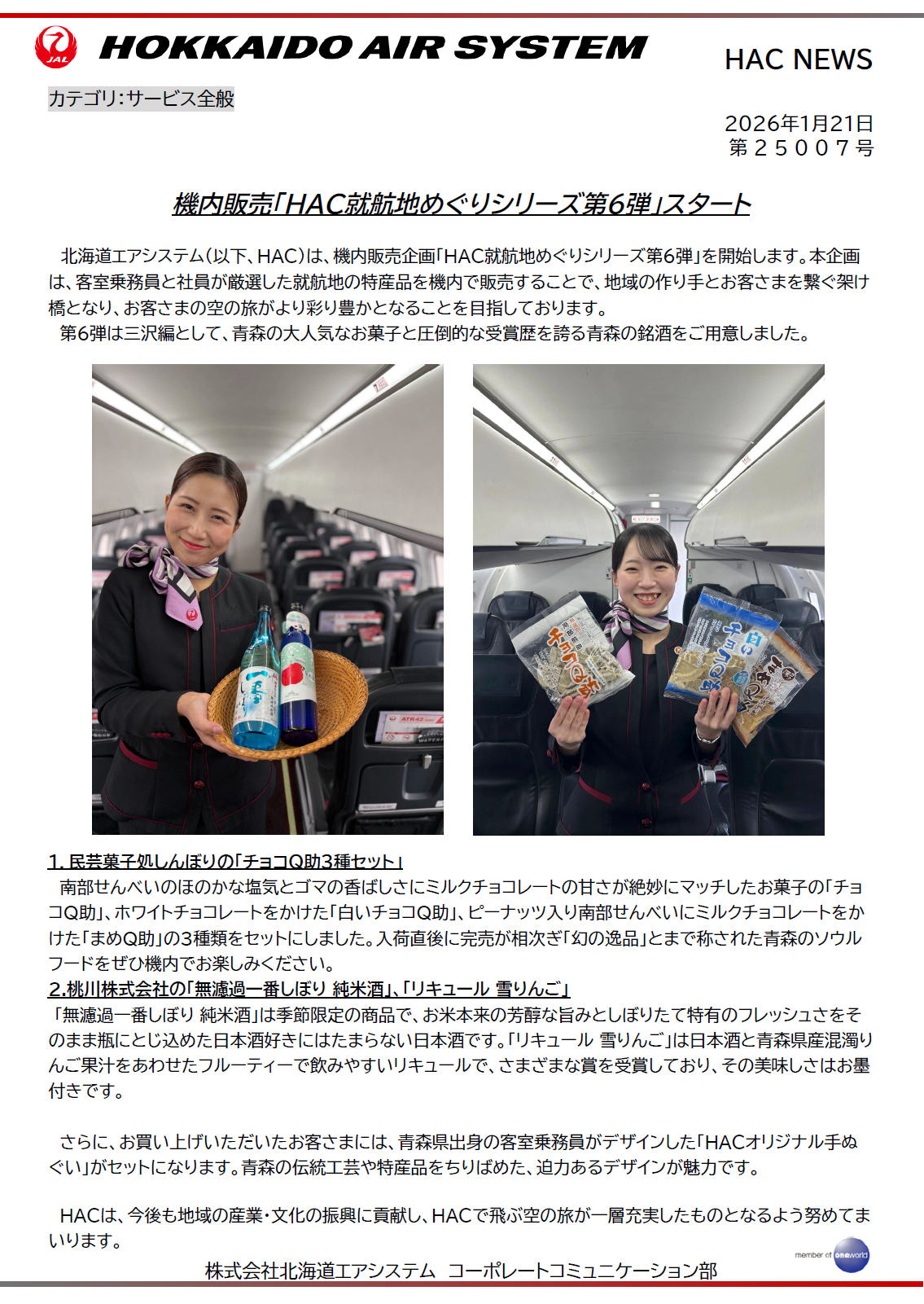 【北海道】機内販売 「HAC就航地めぐりシリーズ第6弾」スタート