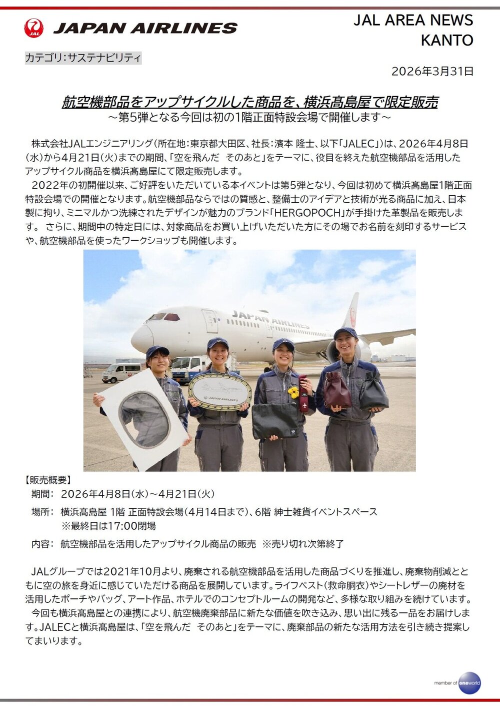 【関東】航空機部品をアップサイクルした商品を、横浜髙島屋で限定販売