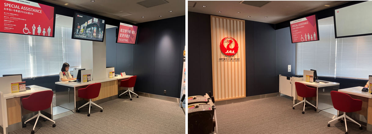 また、ターミナル1階のカウンターの配置を見直し、広いスペースを確保したほか、「スペシャルアシスタンスカウンター」を設置することで、係員のお手伝いを希望されるお客さまも、安心してお手続きができるようになりました。