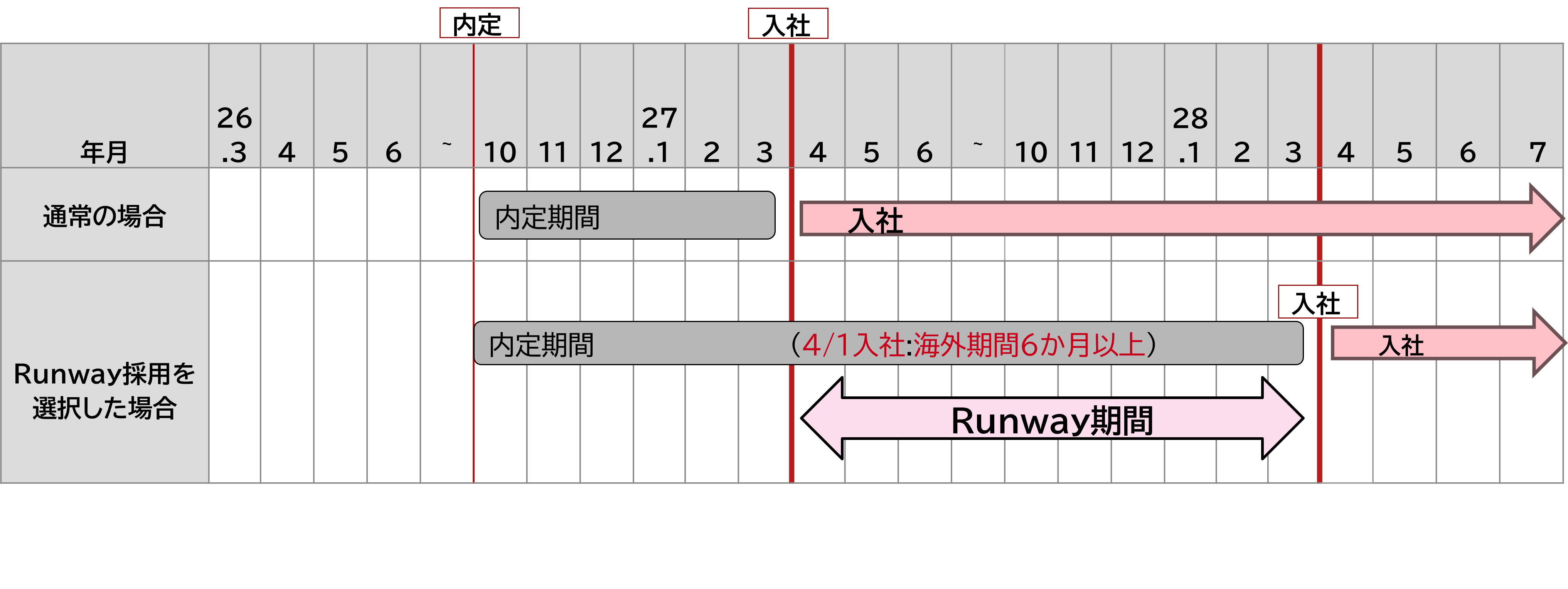 内容: 入社前に、最大1年の「助走期間」を設定