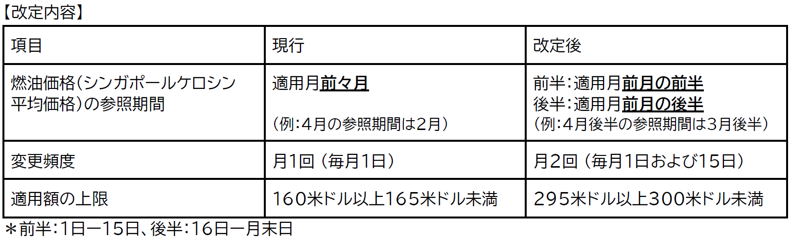 国際貨物 燃油サーチャージ適用方法の改定および適用額の追加