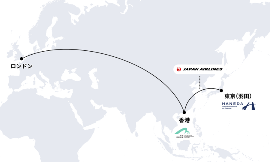 検証ルート: 羽田-(JL029)-香港-(BA032)-ロンドン